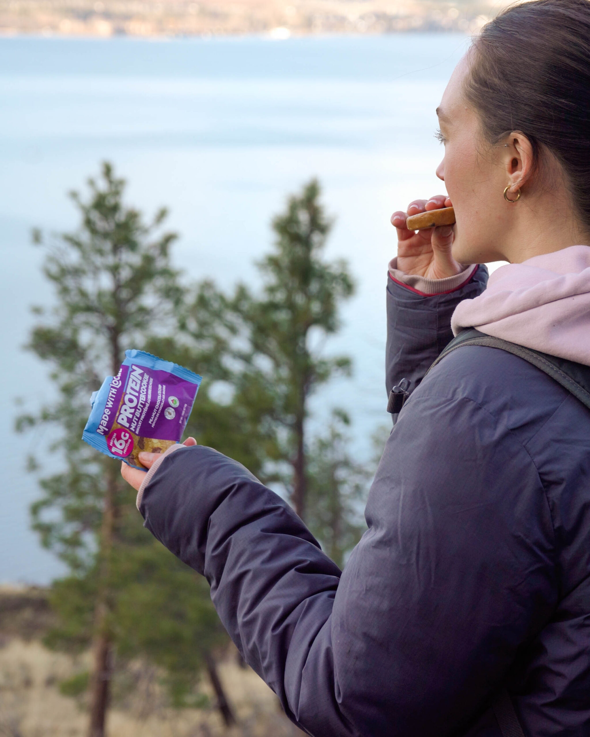 We played with natural elements and use-case shots to make the product the hero while still showing the audience through photo and video that they need this snack for their next hike.